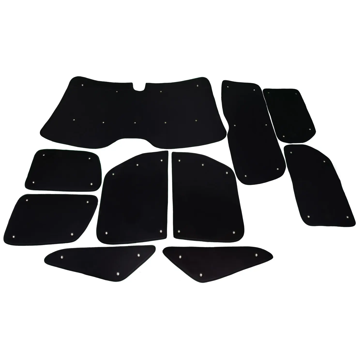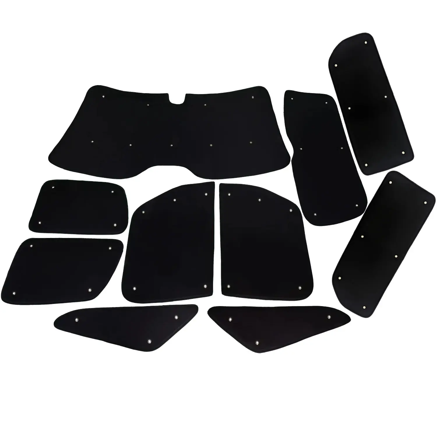 10-piece: Complete darkening consisting of front set (windscreen, driver's side, passenger side, small triangular windows) and rear set (all side windows in the rear, rear window)