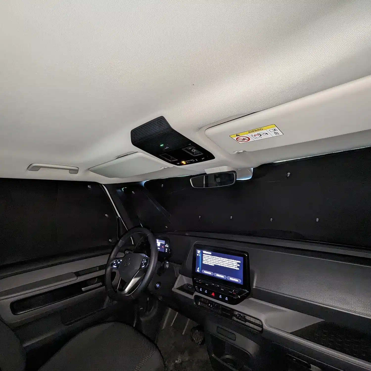 Tip on the side: Do you want to remain inconspicuous on the road and not make your vehicle visually recognizable as a camper? Then simply mount the thermal mats with the black side facing outwards - just turn the suction cups around. This will keep your van discreet and well camouflaged. This works with all mats that are symmetrically shaped on the driver and passenger side.