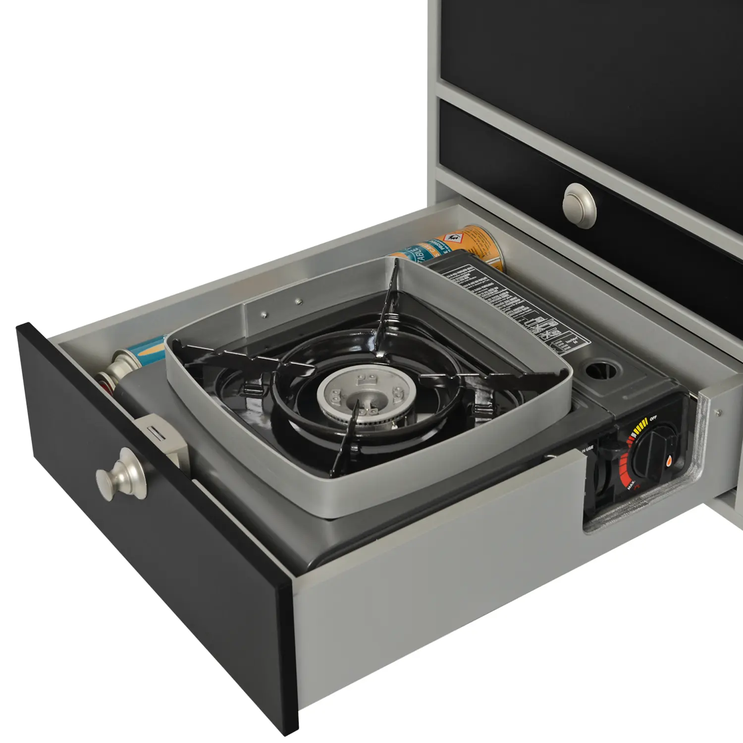 - Removable single-burner gas hob