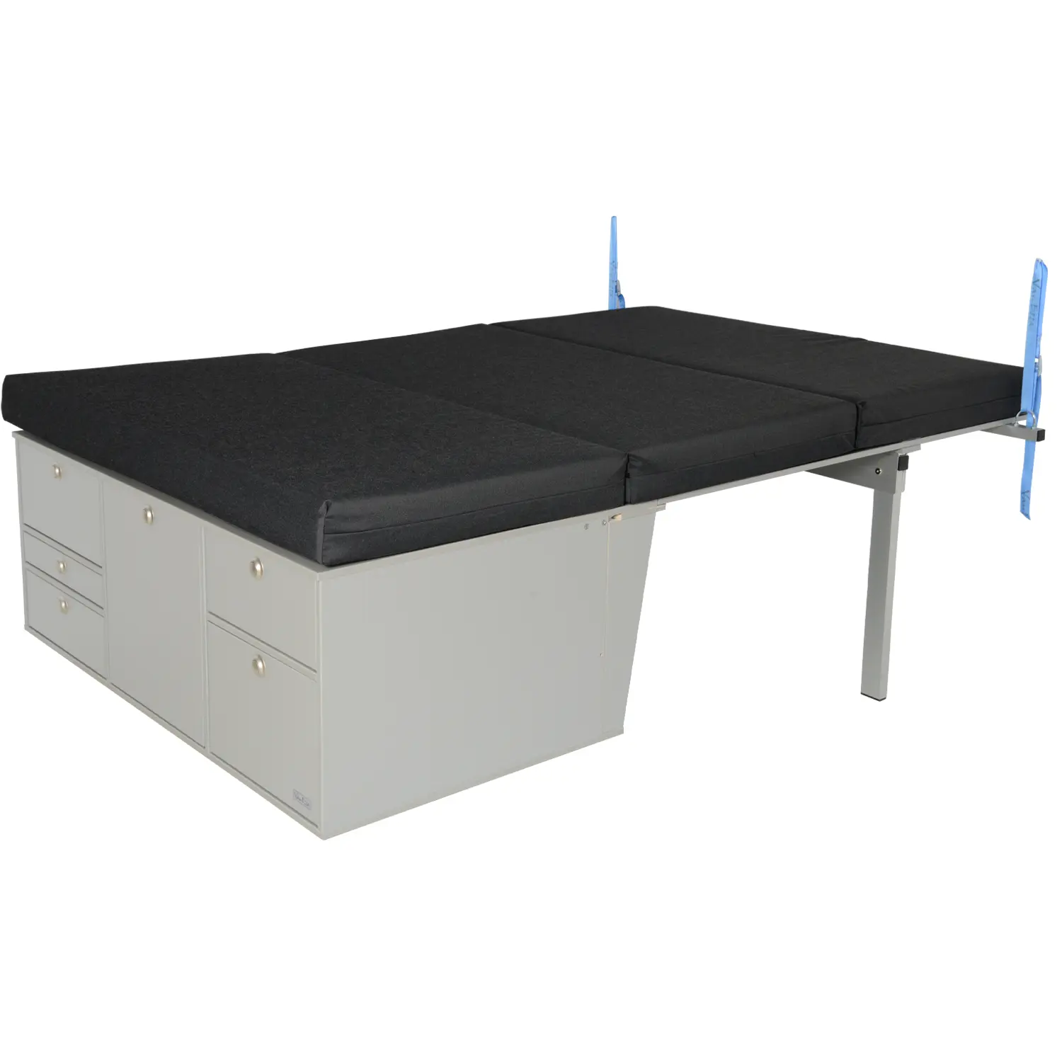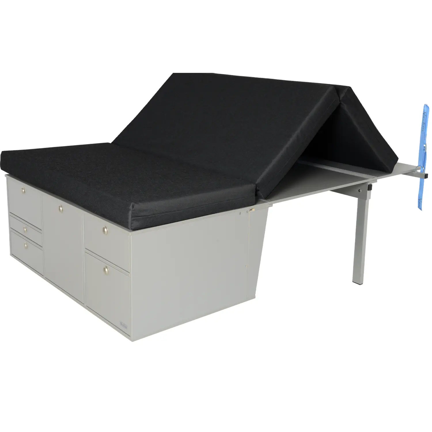 This means you remain flexible and can use the bed to suit the situation. During the journey, the system rests in the trunk. The passenger compartment and existing seats can be fully utilized.