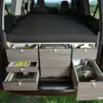 - Meanwhile, the sleeping system rests in the trunk on the rear kitchen