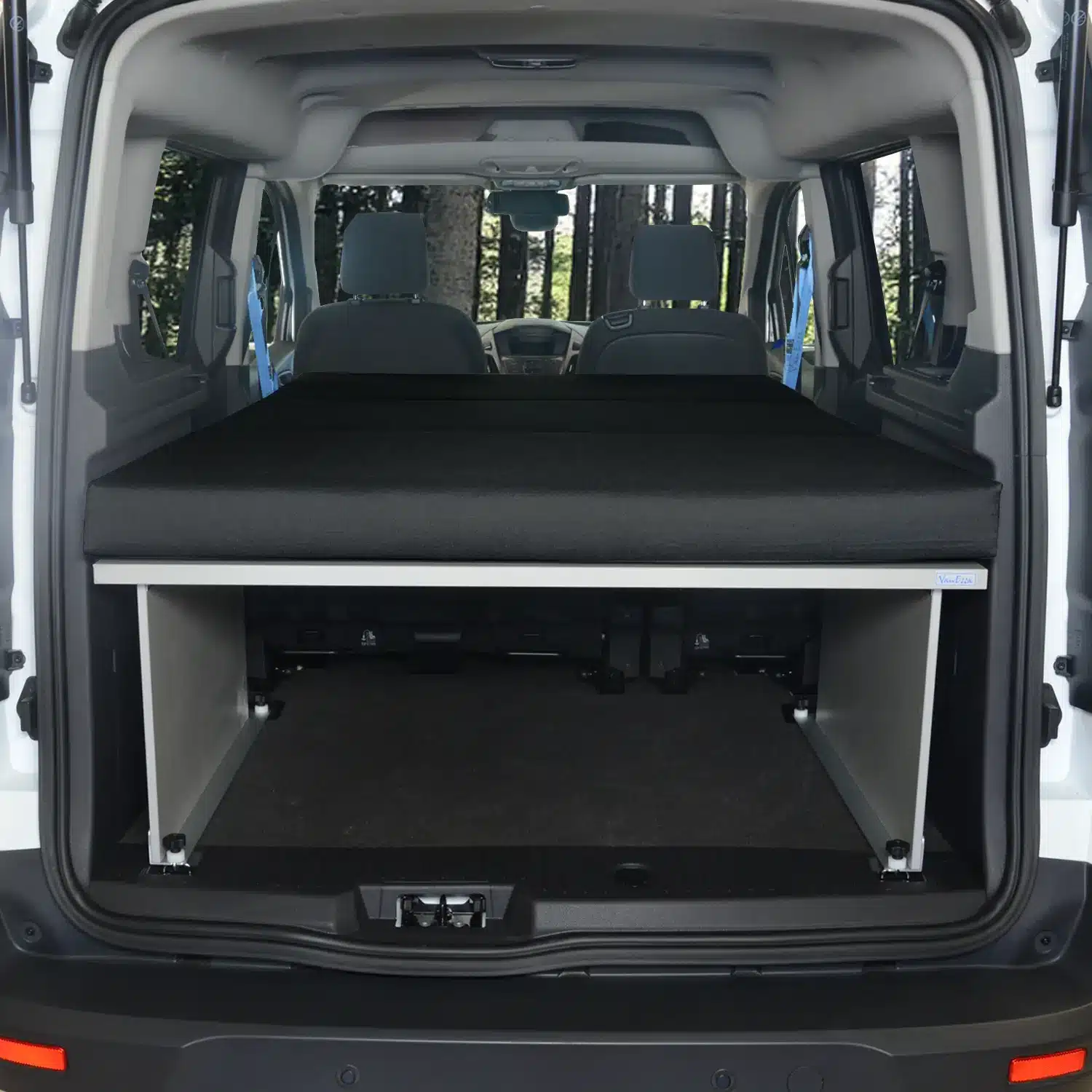 Our VanEssa sleeping system also transforms this interior into a comfortable sleeping area for two people