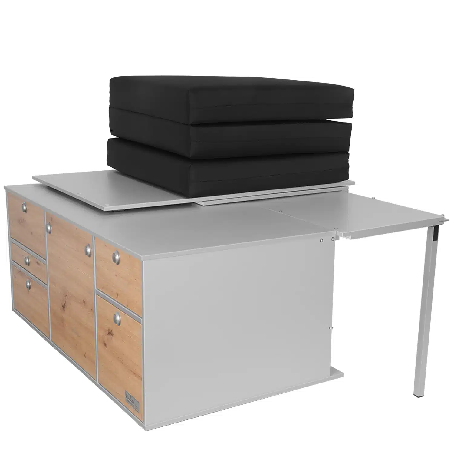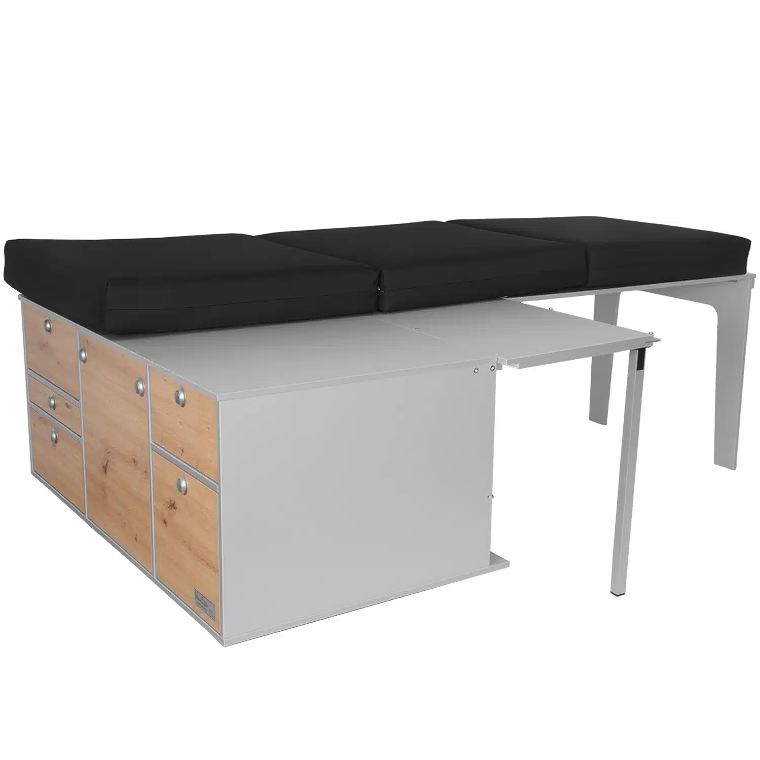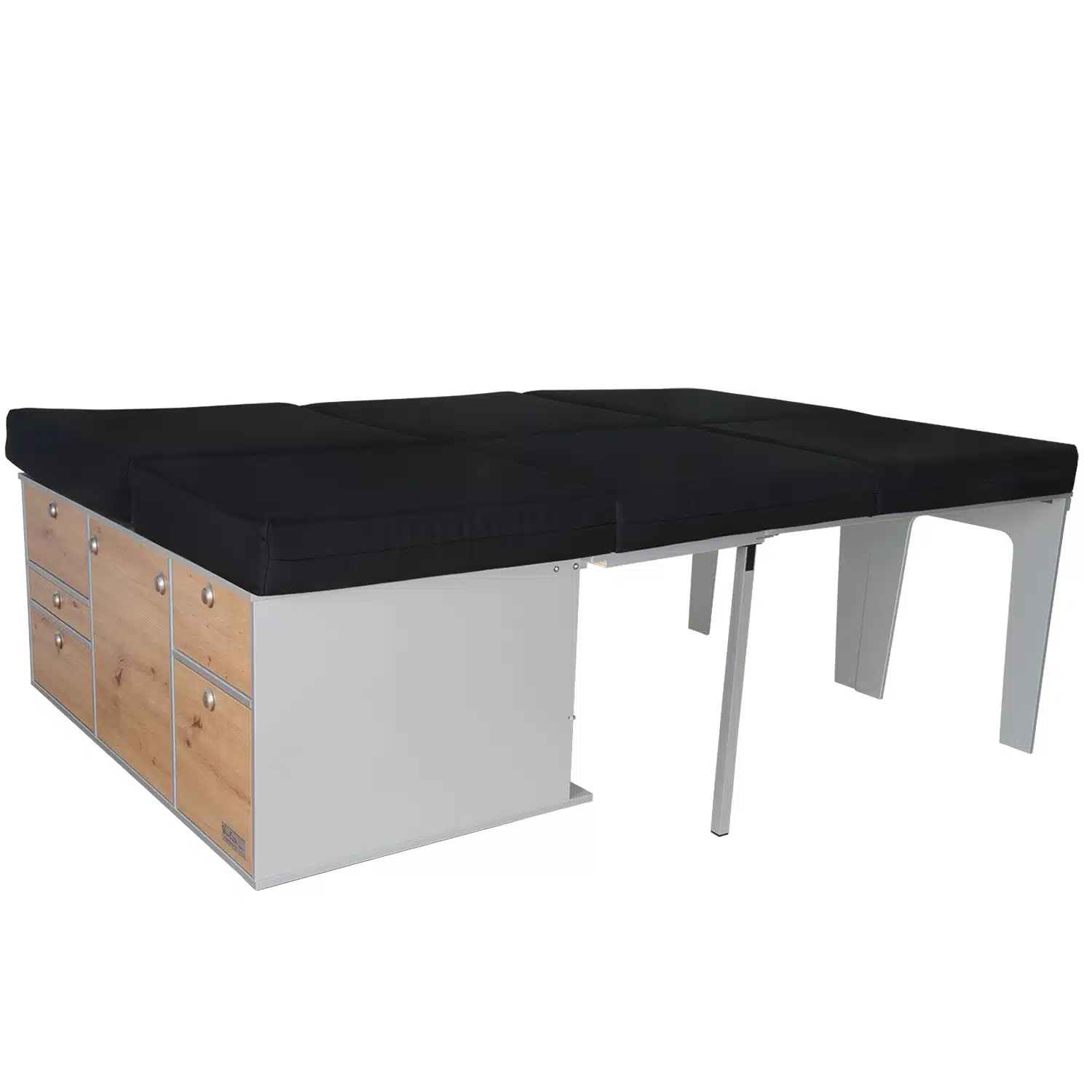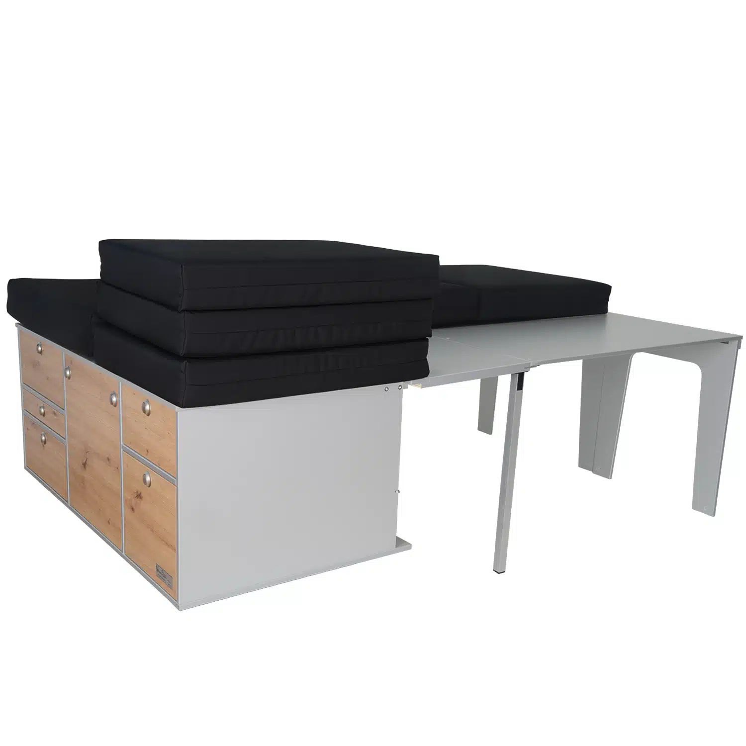 Our VanEssa sleeping system also transforms this interior into a comfortable sleeping space for up to two people.