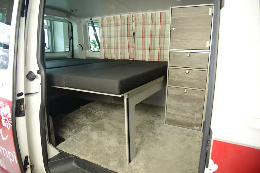 The Surfer sleeping system is the ideal addition to your VanEssa rear kitchen in your van & Caravelle. No bed can be set up as quickly as our Surfer system.