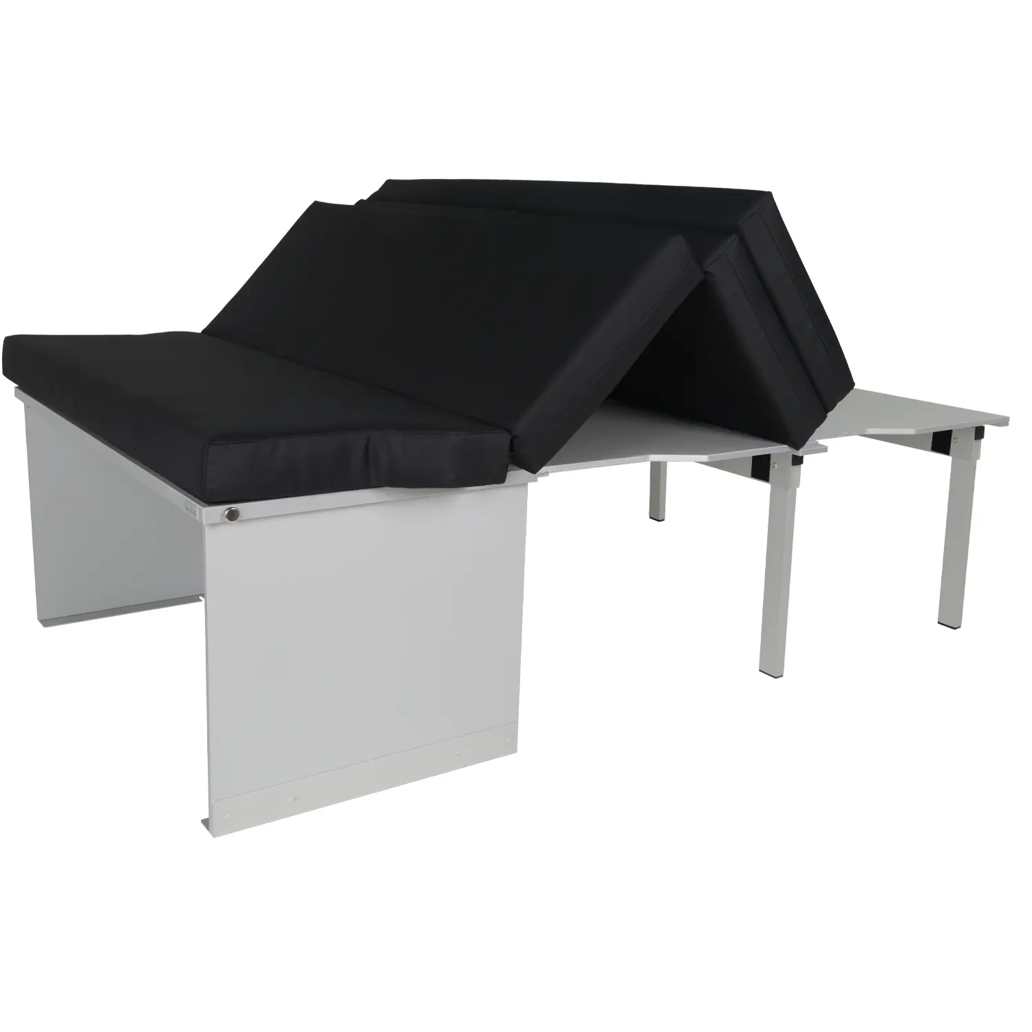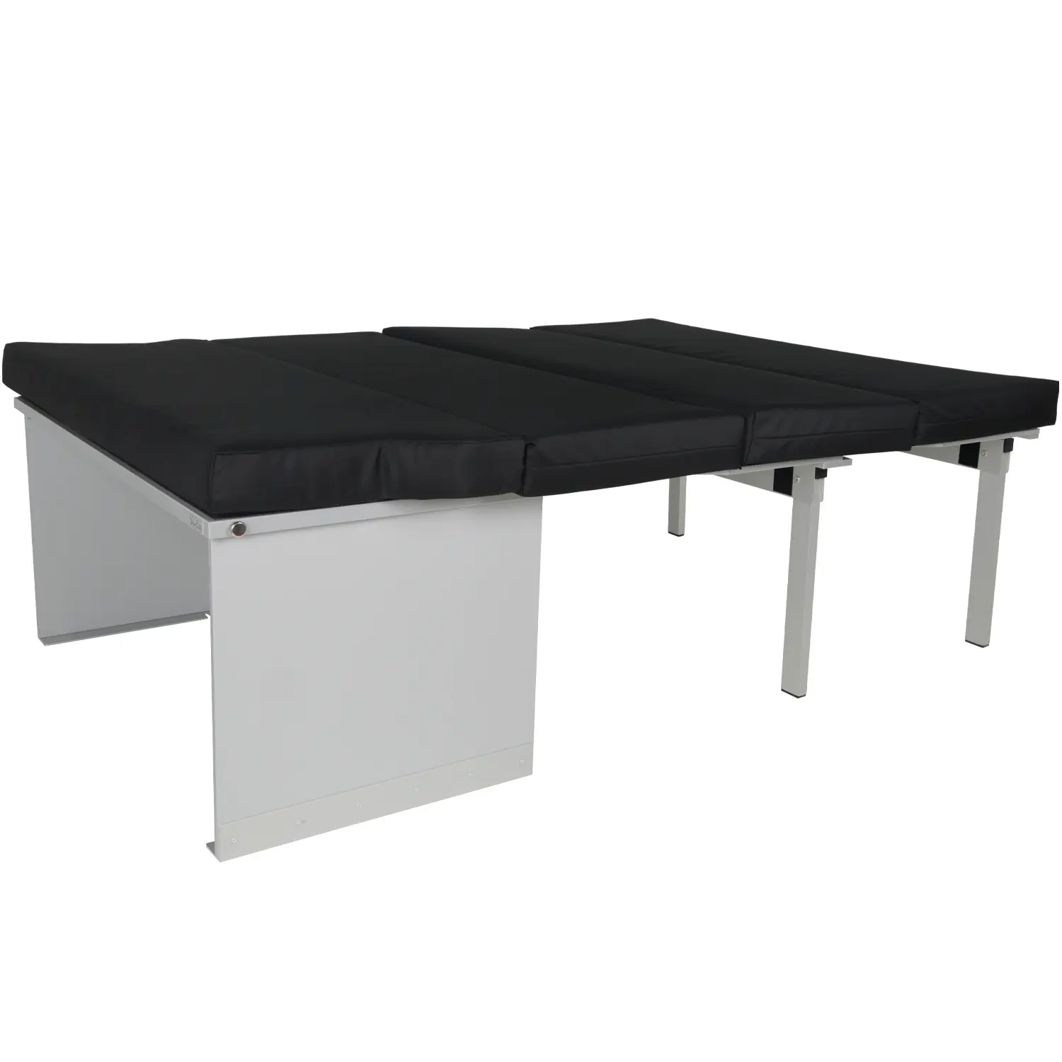 The van bed is divided into three sections and offers plenty of space in the passenger compartment thanks to the narrow rear board. Two rows of seats are usually possible (depending on the vehicle, see Vehicle requirements tab). With our van camping bed, which is compatible with various seat combinations, you are very flexible. Existing seats can be fully utilized. During the journey, the system rests in the trunk.