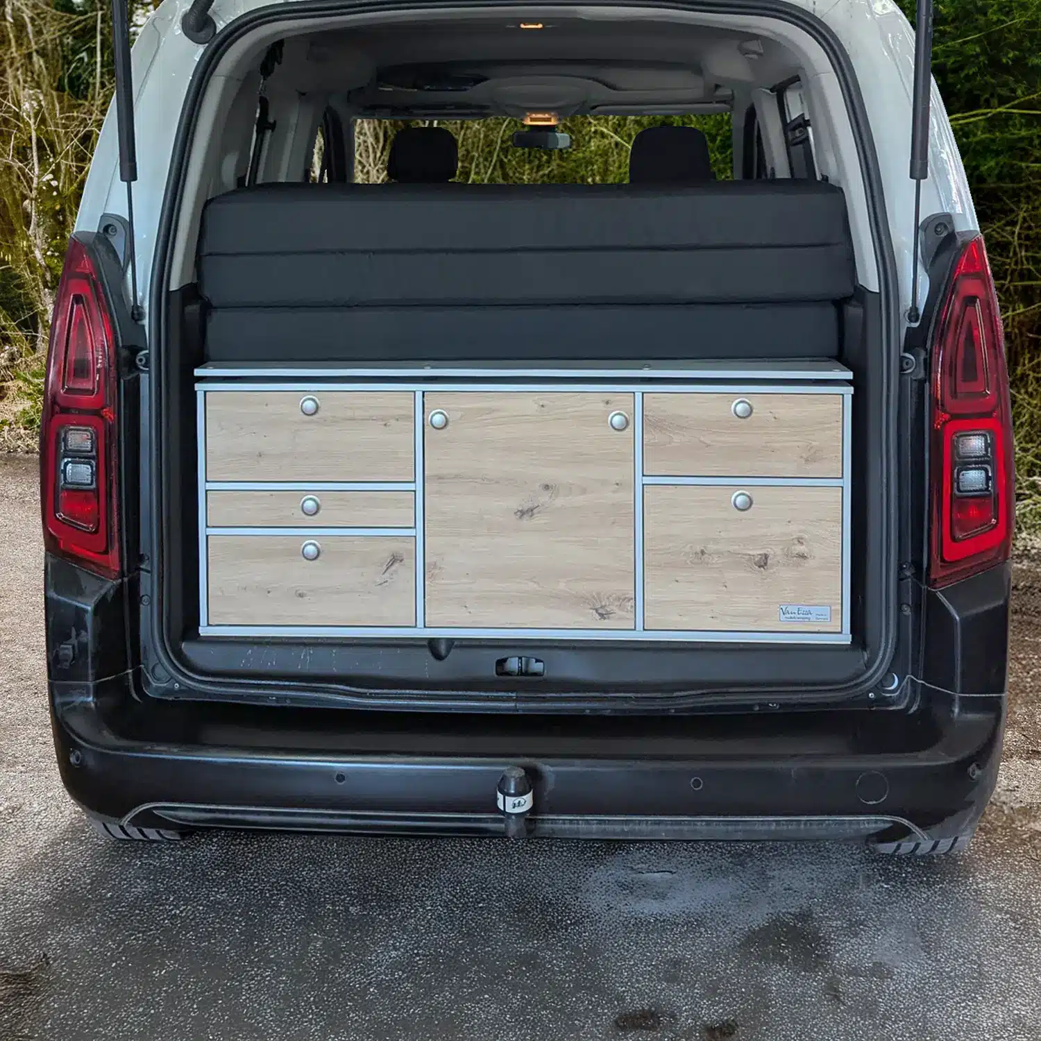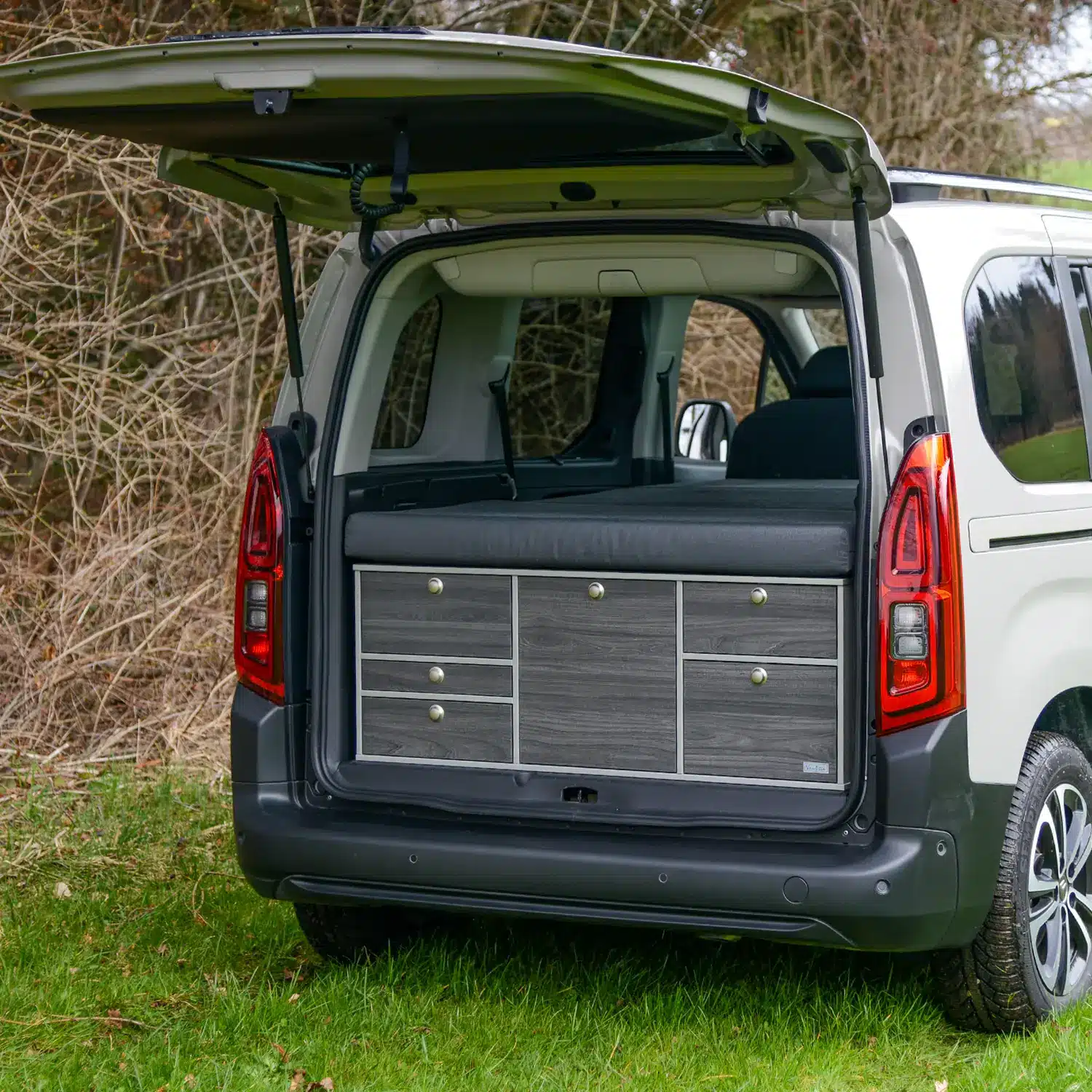 Dein Berlingo bleibt ein Alltagswagen, den du je nach Bedarf sehr schnell in ein Reisemobil umrüsten kannst. Die VanEssa Heckküche ist in kürzester Zeit auch wieder ausgebaut und du hast wieder Platz für die tägliche Nutzung.