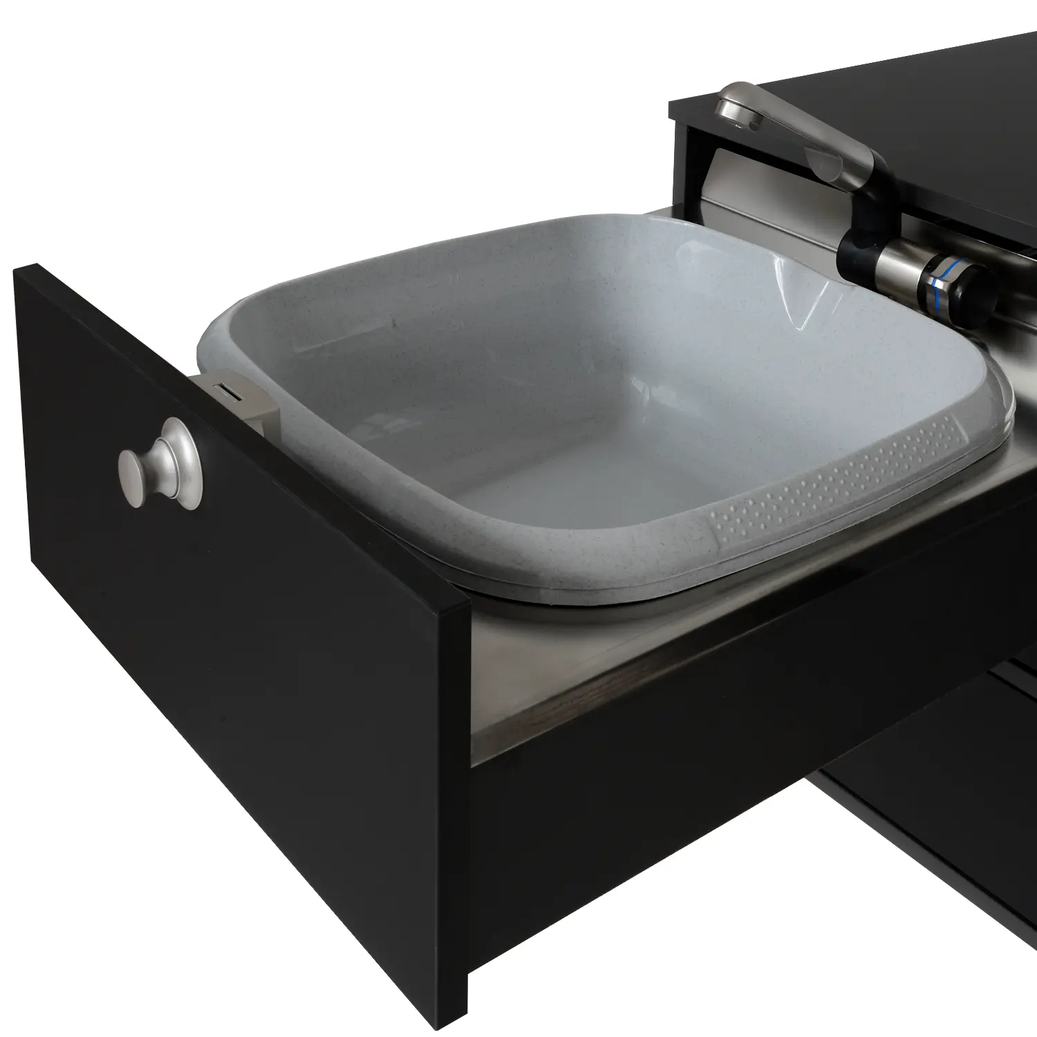 - klappbarer Wasserhahn (läuft via 12V-Pumpsystem)