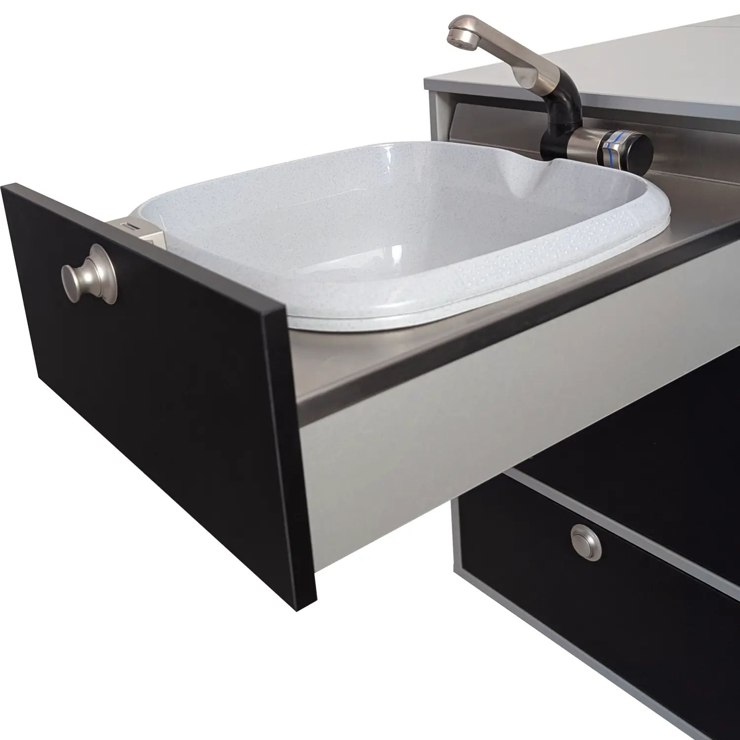 - klappbarer Wasserhahn (läuft via 12V-Pumpsystem)