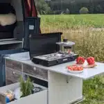Die VanEssa Modulküche Arco ist in wenigen Minuten auf deinem Heckauszug fixiert und sofort einsatzbereit.