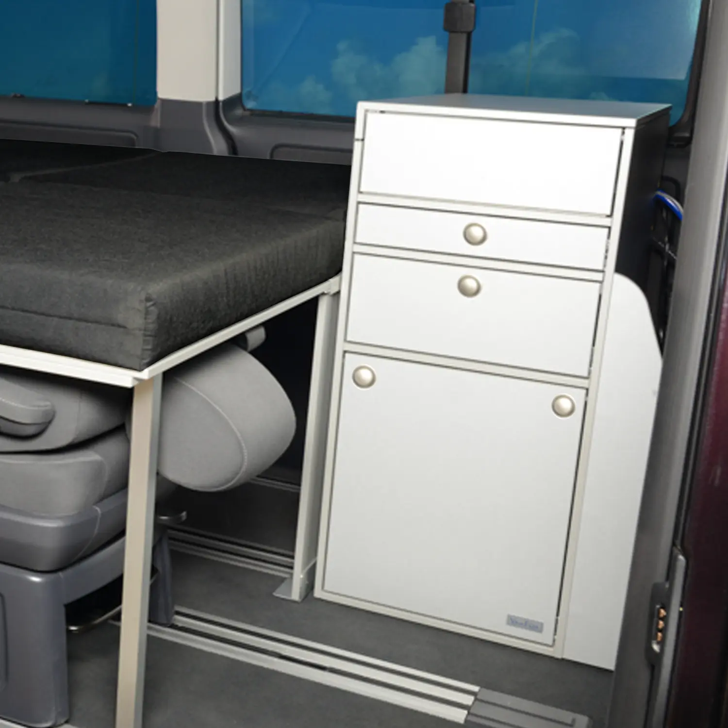 - kombinierbar mit VanEssa Schlafsystemen (siehe Schlafsysteme/dein Fahrzeugmodell) oder einer zum Bett aufgeklappten Sitzbank