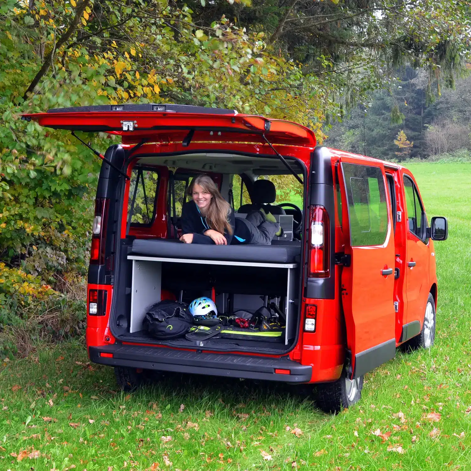 Dein Van bleibt ein Alltagswagen, der je nach Bedarf in ein Reisemobil umgerüstet werden kann. Das Schlafsystem ist in kürzester Zeit mit wenigen Handgriffen wieder ausgebaut.