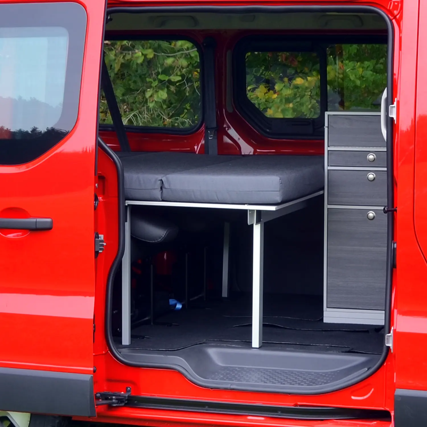 Beim kurzen Radstand ohne 3er Bank benötigst du dieses Bett: Schlafsystem Surfer – Fiat Talento