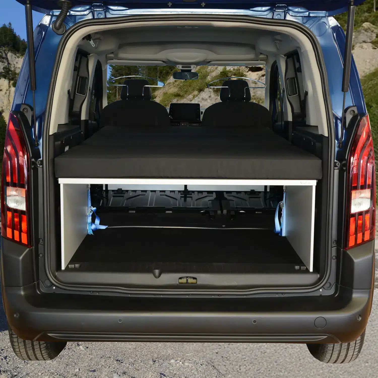Dein Proace City Verso bleibt ein Alltagswagen, der je nach Bedarf in Minutenschnelle in ein Reisemobil umgerüstet werden kann.