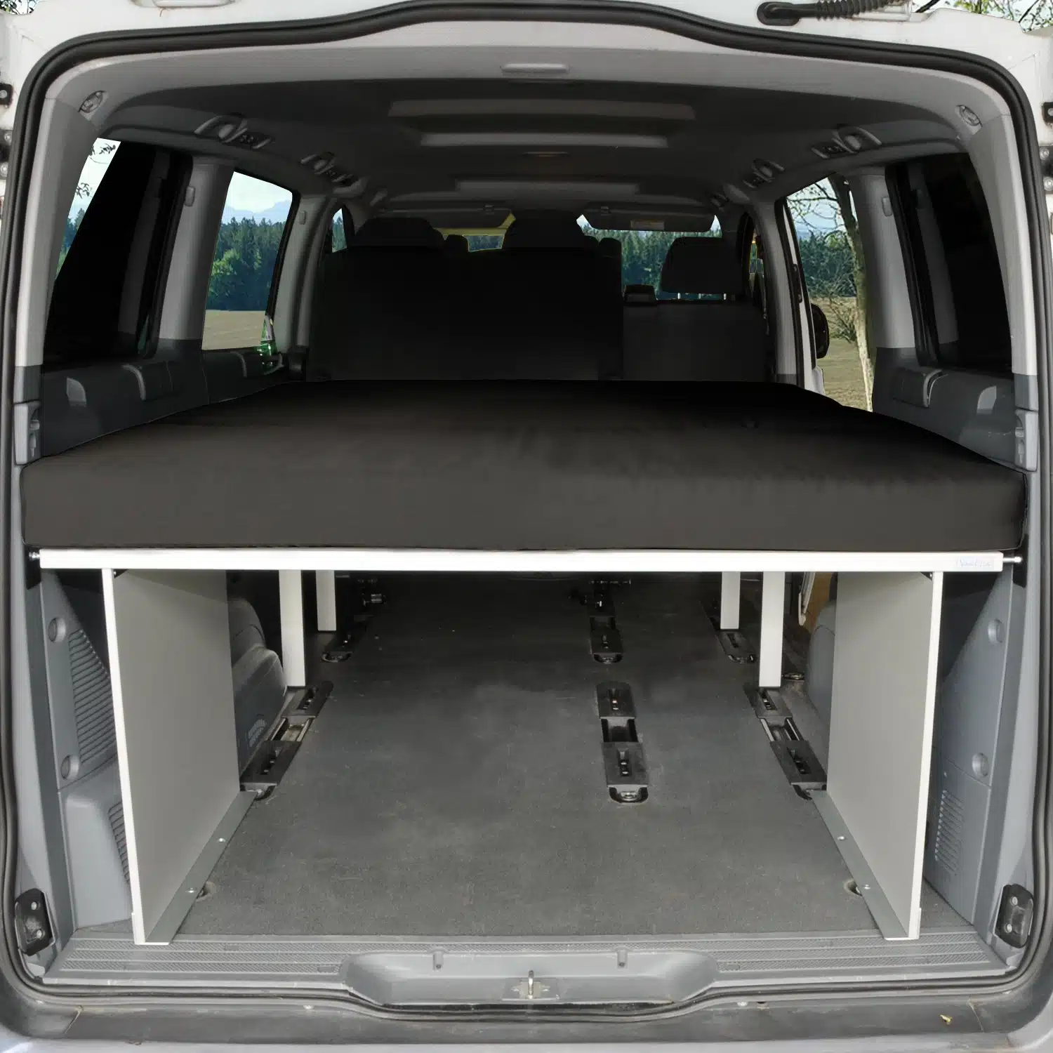 Dein Van bleibt ein Alltagswagen, der je nach Bedarf in ein Reisemobil umgerüstet werden kann. Das Schlafsystem ist in kürzester Zeit mit wenigen Handgriffen wieder ausgebaut.