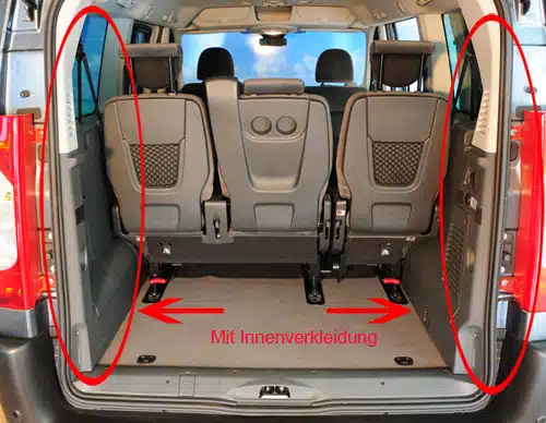Die Küche einfach nur ins Heck schieben und fixieren. Der Fahrgastraum und vorhandene Sitze können voll genutzt werden.