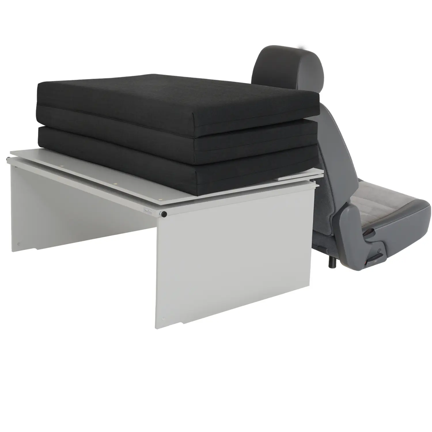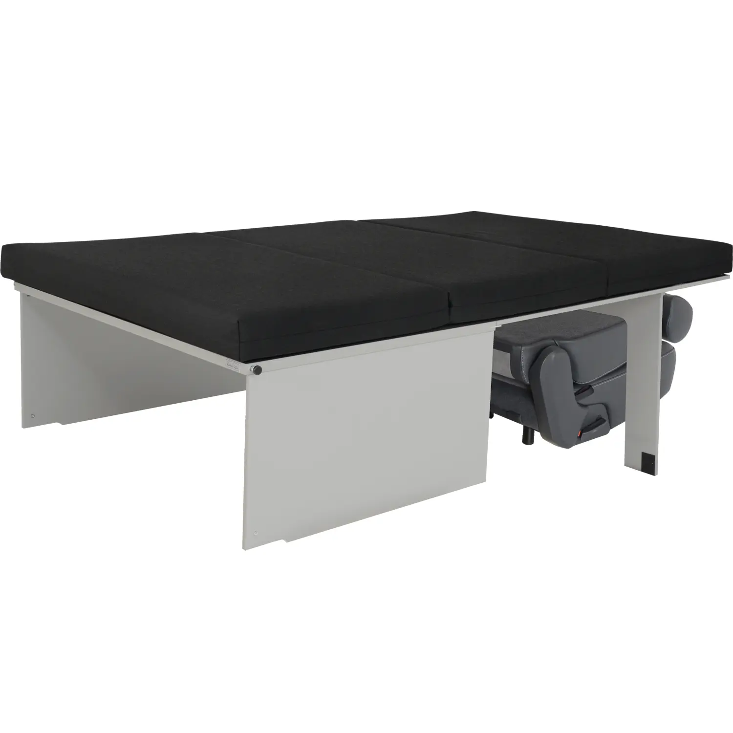 Somit bleibt man flexibel und kann das Bett situationsangepasst nutzen. Während der Fahrt ruht das System im Kofferraum. Der Fahrgastraum und vorhandene Sitze können voll genutzt werden.