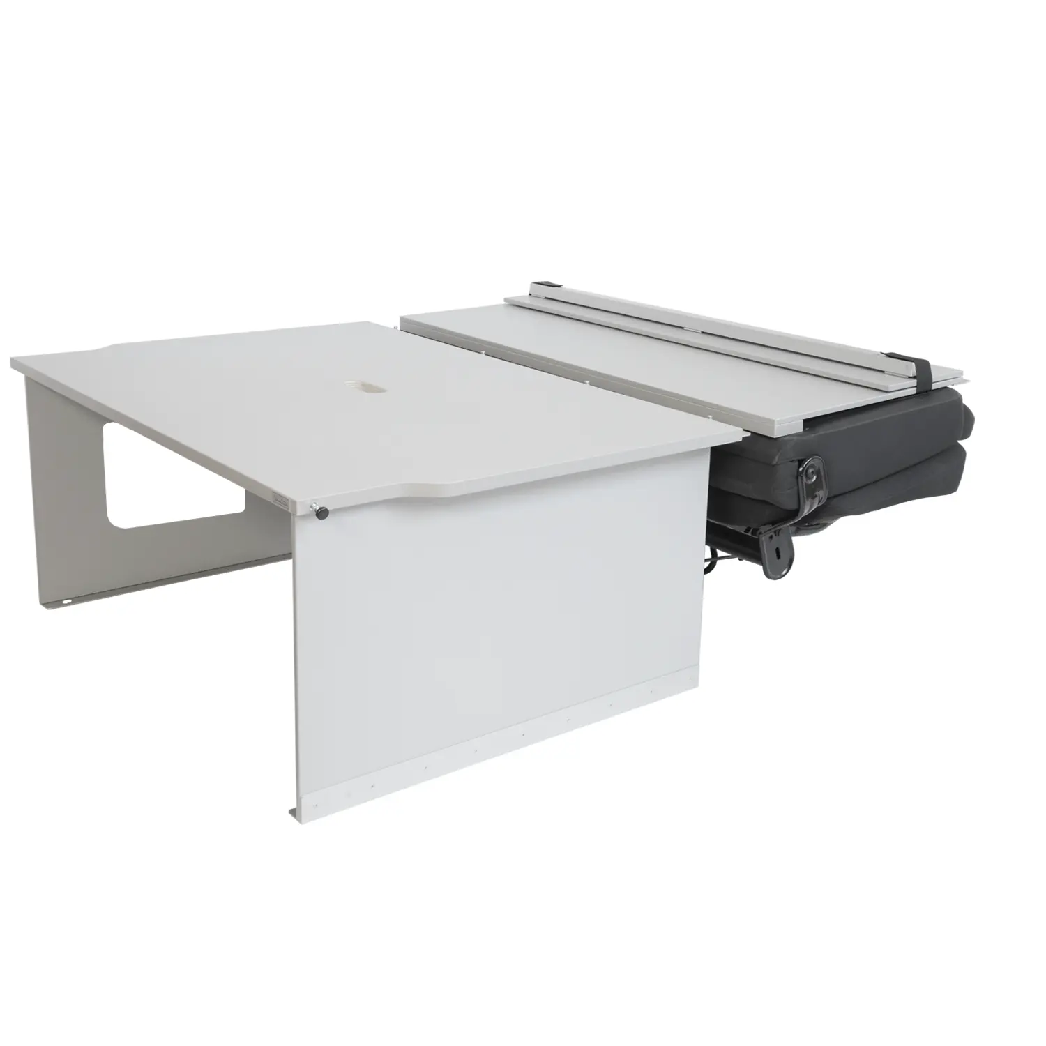 Dieses Schlafsystem ist auf deinen Transporter & deine Caravelle maßgeschneidert. Das faltbare Schlafboard wird an der Rückenlehne der 3er-Sitzbank befestigt und kann dauerhaft im Fahrzeug bleiben, ohne zu stören. Das Schlafsystem hast du mit wenigen Handgriffen in Sekundenschnelle aufgebaut.
