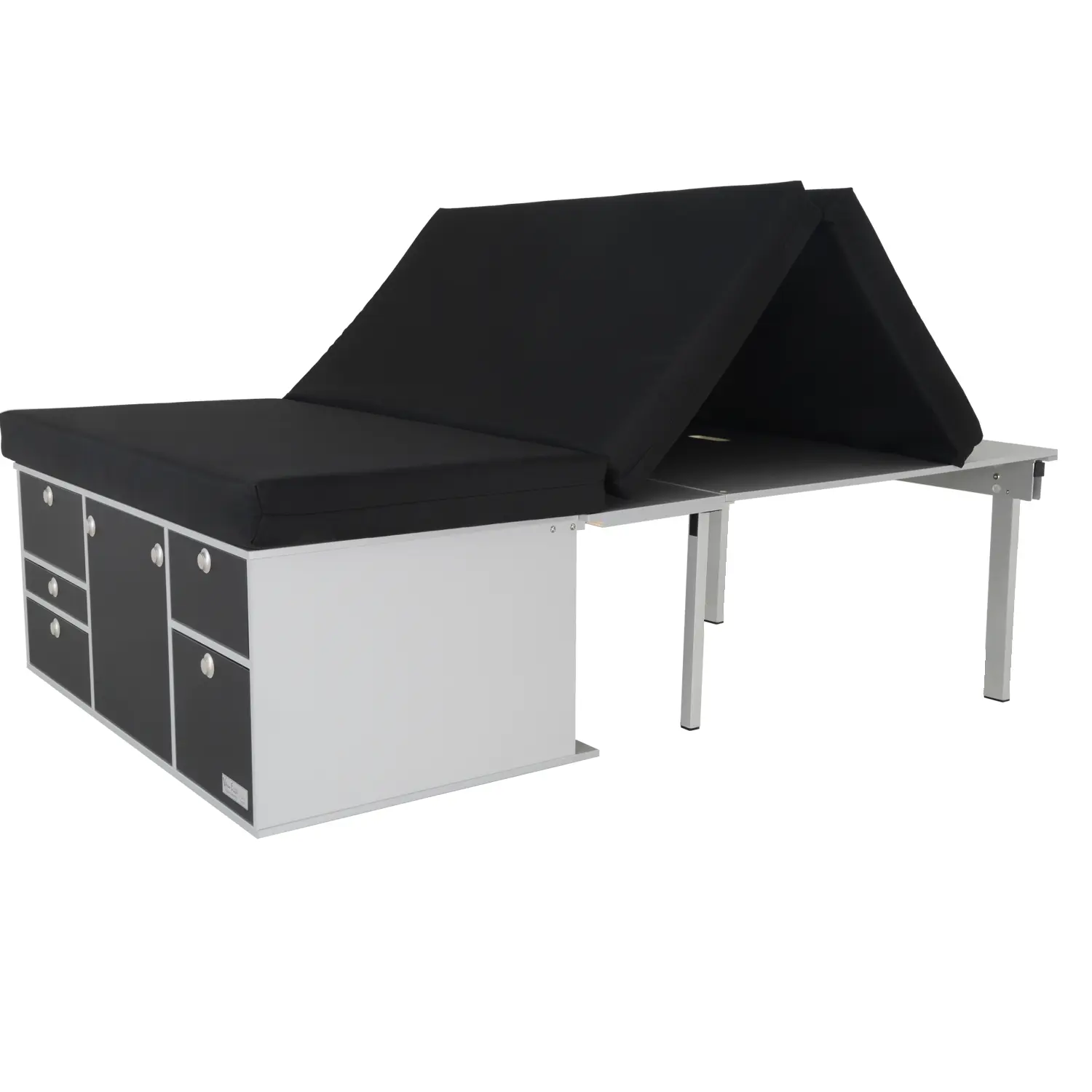 Somit bleibt man flexibel und kann das Bett situationsangepasst nutzen. Während der Fahrt ruht das System im Kofferraum. Der Fahrgastraum und vorhandene Sitze können voll genutzt werden.