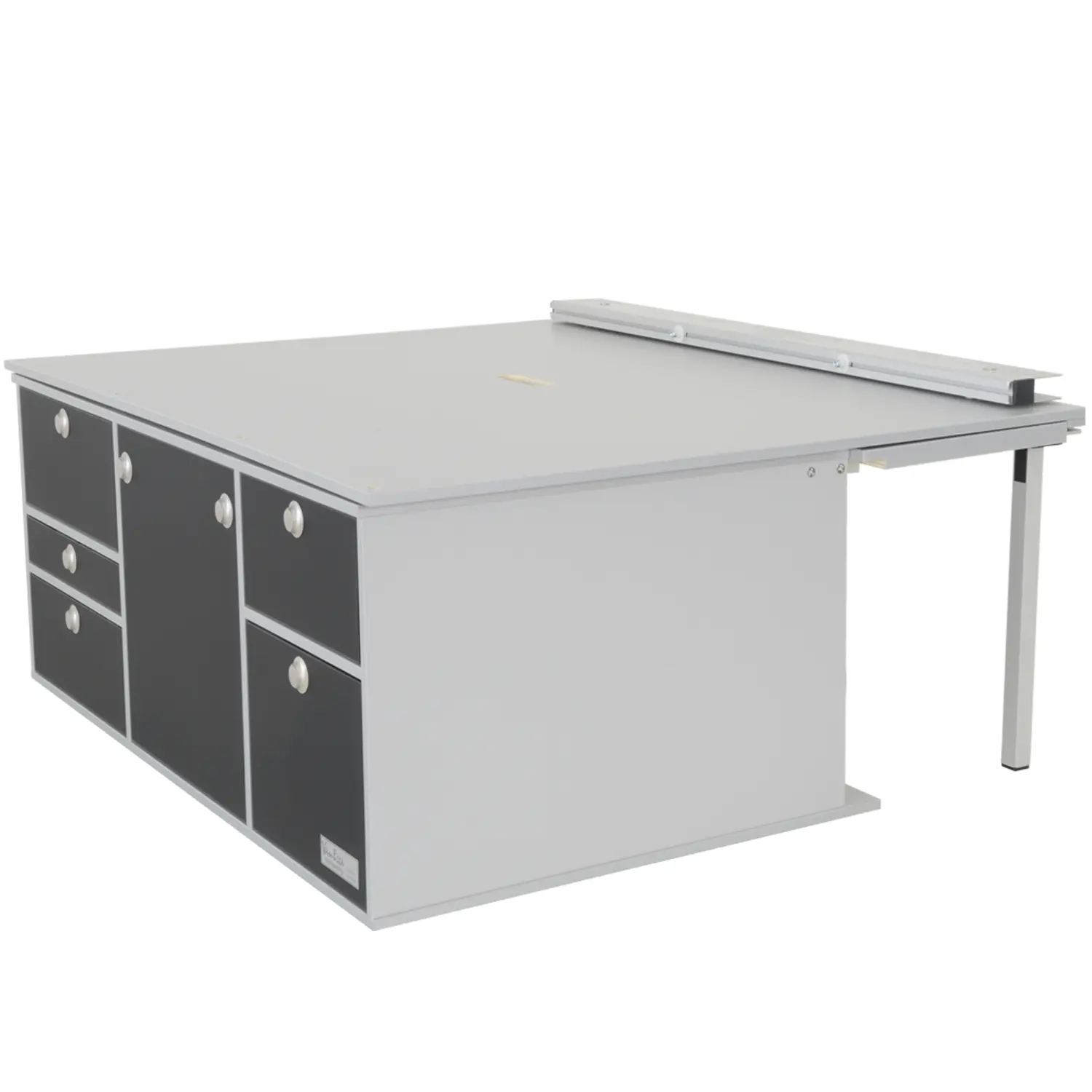- Küchenverlängerung an Heckküche einrasten, Stützfüße aufstellen