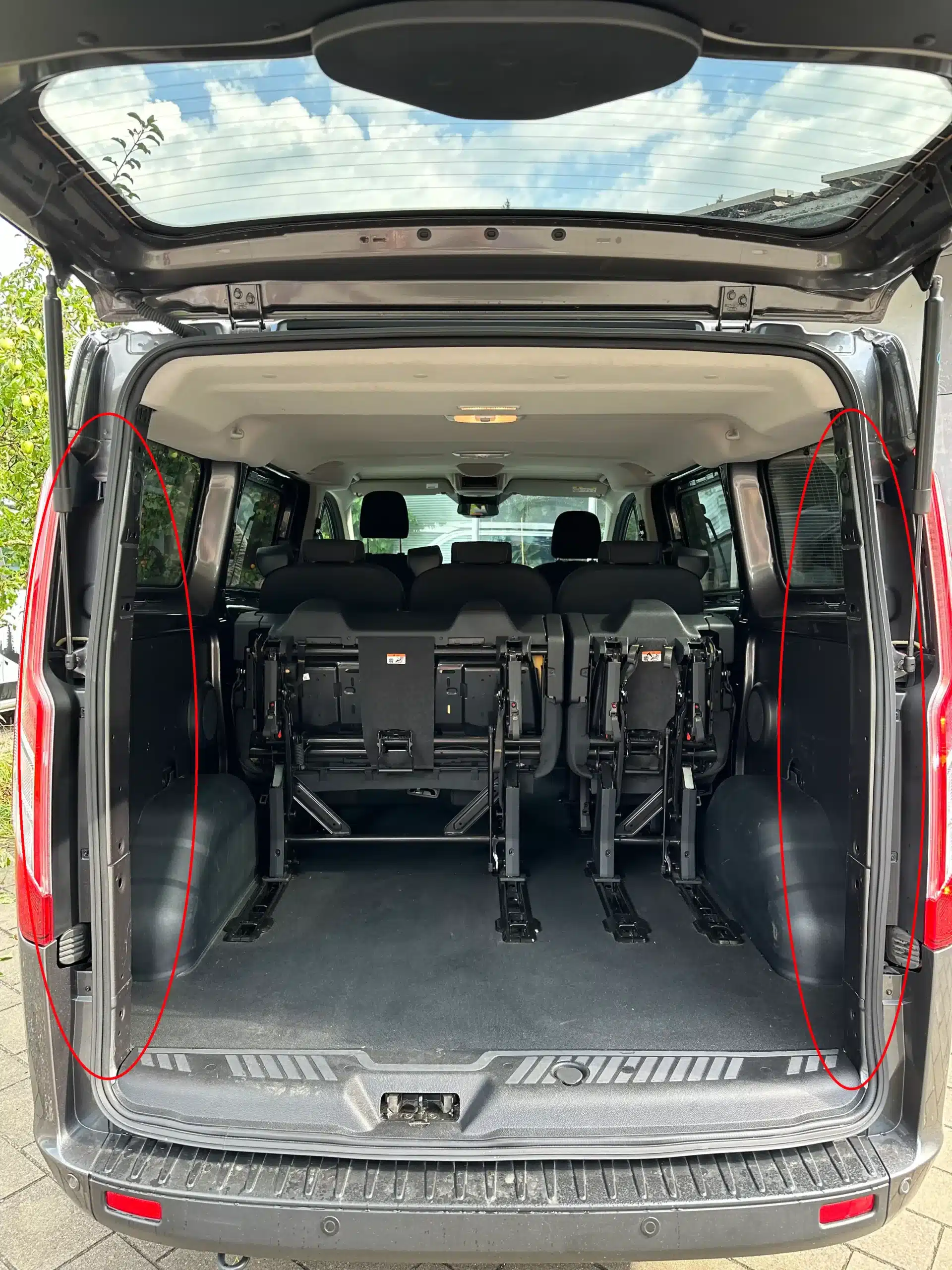 Die Küche einfach nur ins Heck schieben und fixieren. Der Fahrgastraum und vorhandene Sitze können voll genutzt werden.