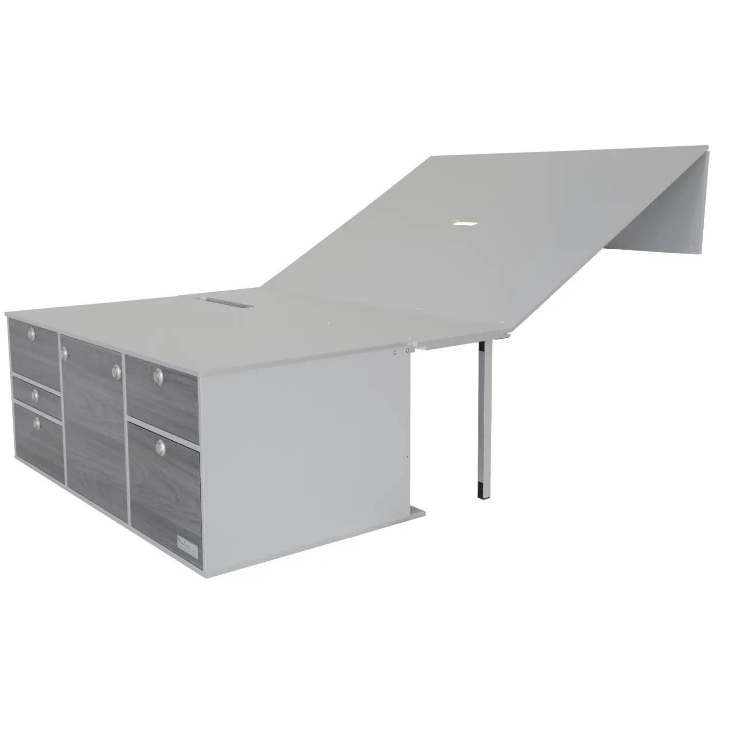 - Küchenverlängerung an Heckküche einrasten, auf Alustützen stabilisieren