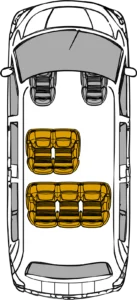 2er-Bank/Einzelsitze müssen bei komplett aufgebautem Bett nach vorne geklappt sein