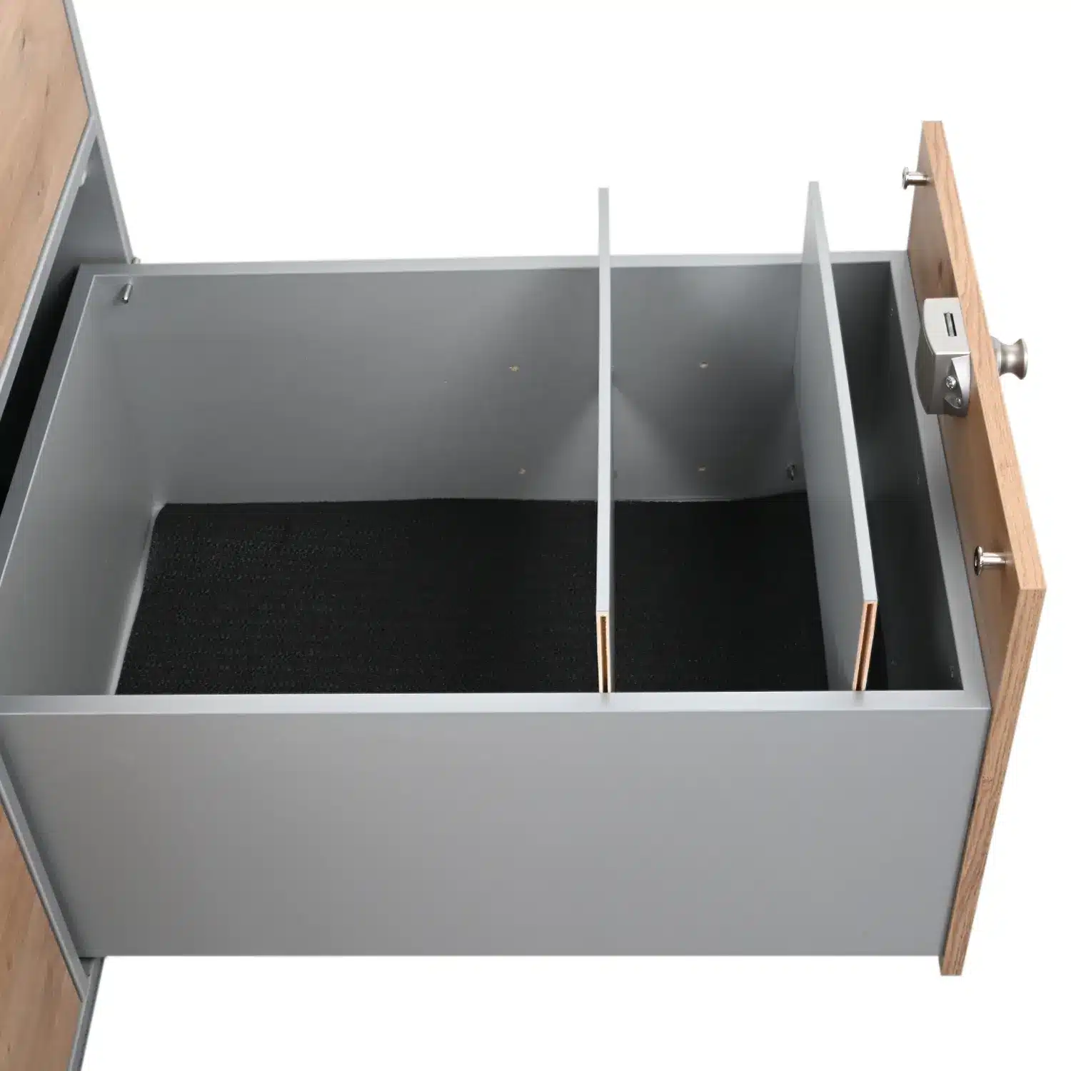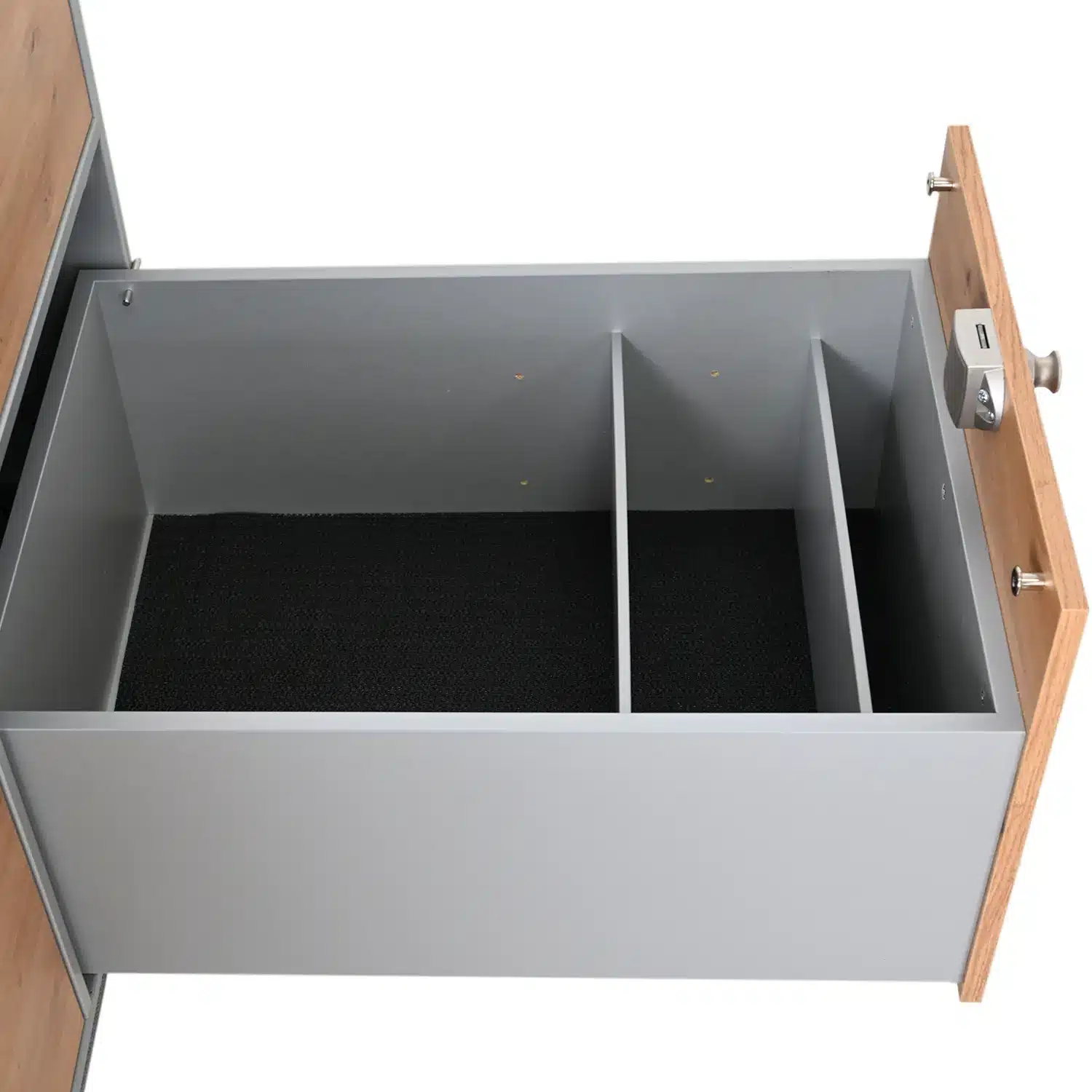 Die Trennwände können jederzeit variabel versetzt bzw. entfernt werden. Es sind vier Halterungspositionen vorbereitet. Die mühelose Montage funktioniert ohne Werkzeug oder Schrauben.