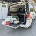 neben der Küche ist Platz für eine große Kühlbox (wir empfehlen eine Kompressor-Kühlbox)