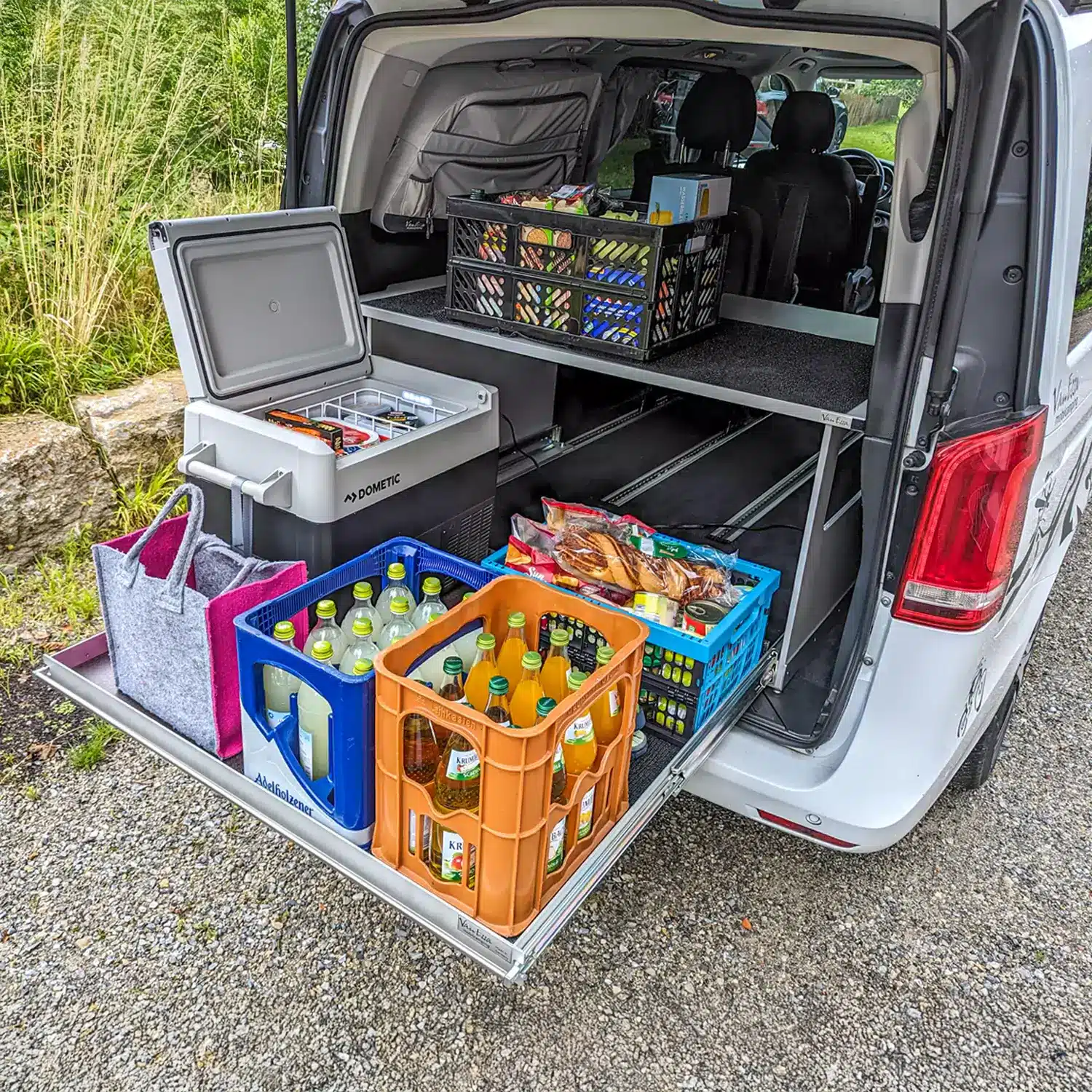 Der VanEssa Heckauszug Riva für deinen Vanstar – stabil und höchst belastbar. Dank seiner intelligenten Konstruktion kannst du problemlos auf alles im tiefen Kofferraum zugreifen, ohne den gesamten Inhalt entladen zu müssen!