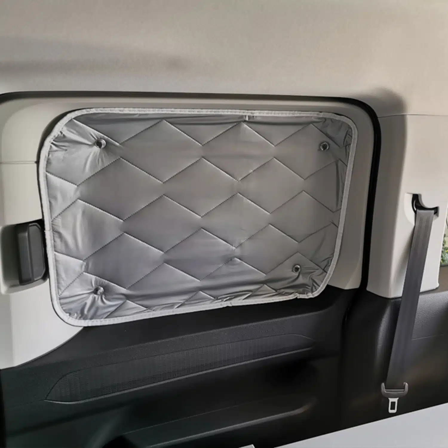 - passgenau für jedes Fenster deines VW Caddy individuell gefertigt – etwas überstehend zur Reduktion seitlicher Lichteinstrahlung